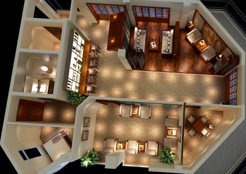 不同的空間不同的設(shè)計(jì)風(fēng)格,大廳大量運(yùn)用石材及暖色系燈光,更彰顯豪華大氣。休閑區(qū)則是舒適典雅的中式風(fēng)格。開(kāi)敞辦公區(qū)的玻璃及香檳金的高隔間則又顯示出了現(xiàn)代時(shí)尚感十足。避免極端單純化傾向,給人造成形式單一、千篇一律的感覺(jué)。